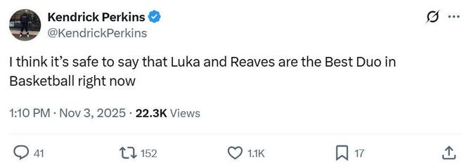 名嘴帕金斯面对两人完美的配合与表现也不禁发文感叹:“我可以肯定的说,东契奇与里夫斯就是当今篮球世界最好的双人组。”