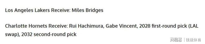 此前美媒Fadeaway World曾为湖人设计过一套4换1的交易方案:湖人送出八村垒、文森特、2028年首轮交换权与2032年次轮签,以此从黄蜂得到布里奇斯。这套方案能否平衡双方诉求,仍需等待交易窗口期的进一步动态。